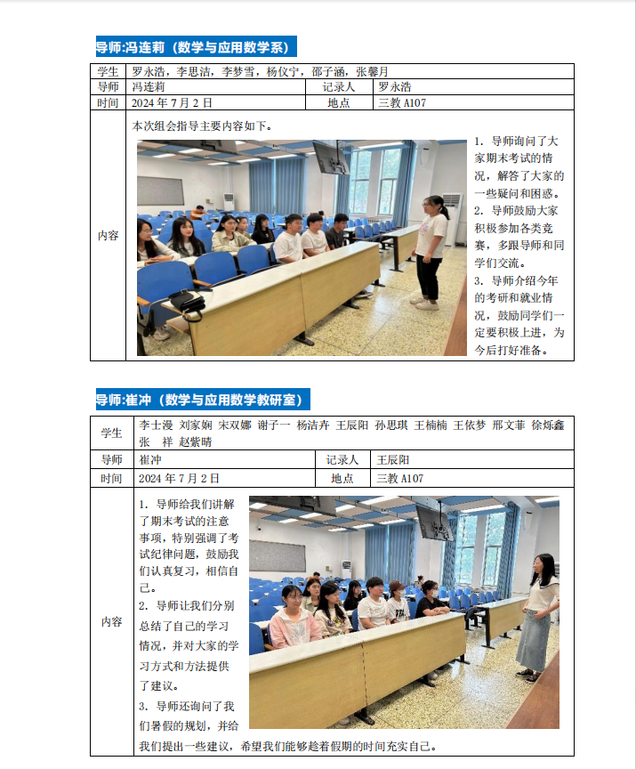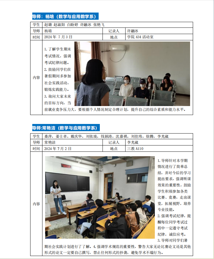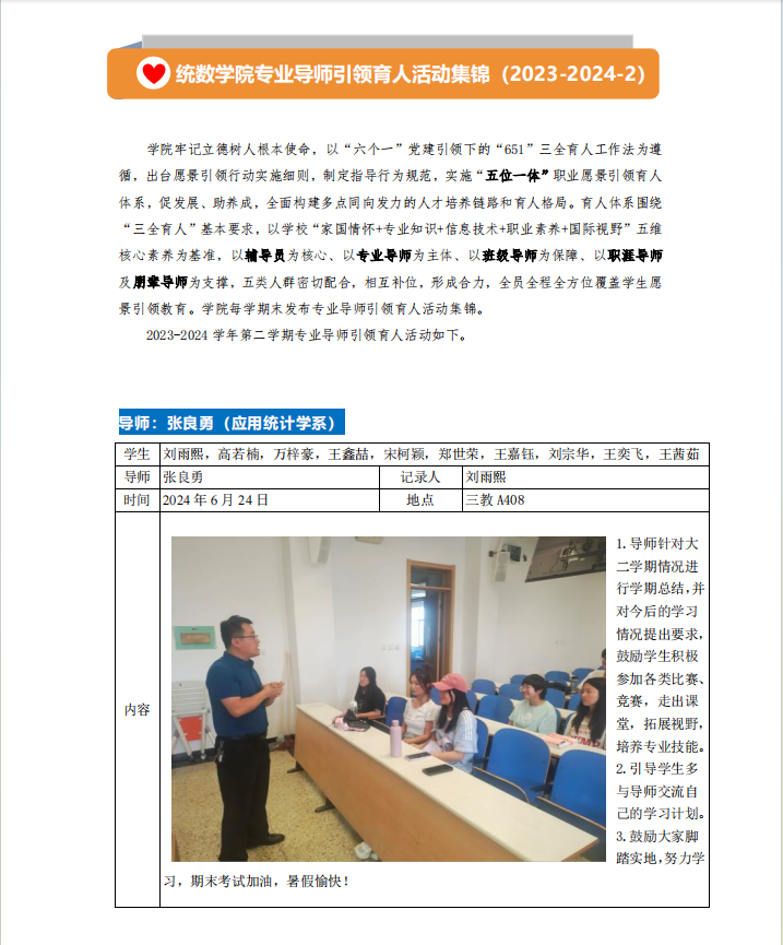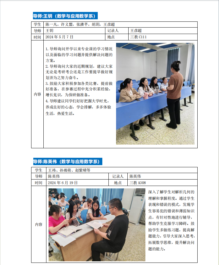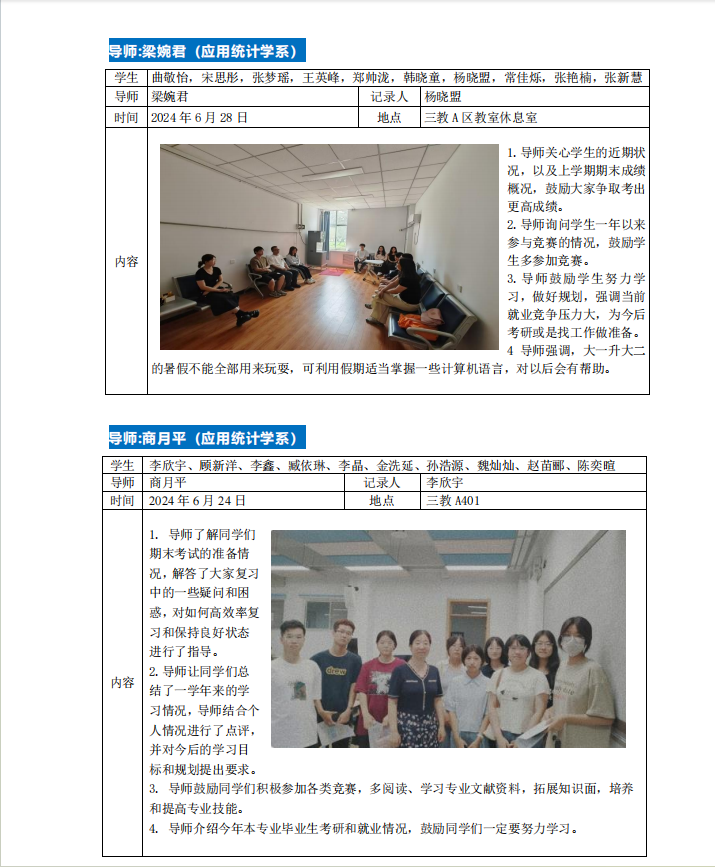 统数学院专业导师引领育人活动集锦(2023-2024-2)
