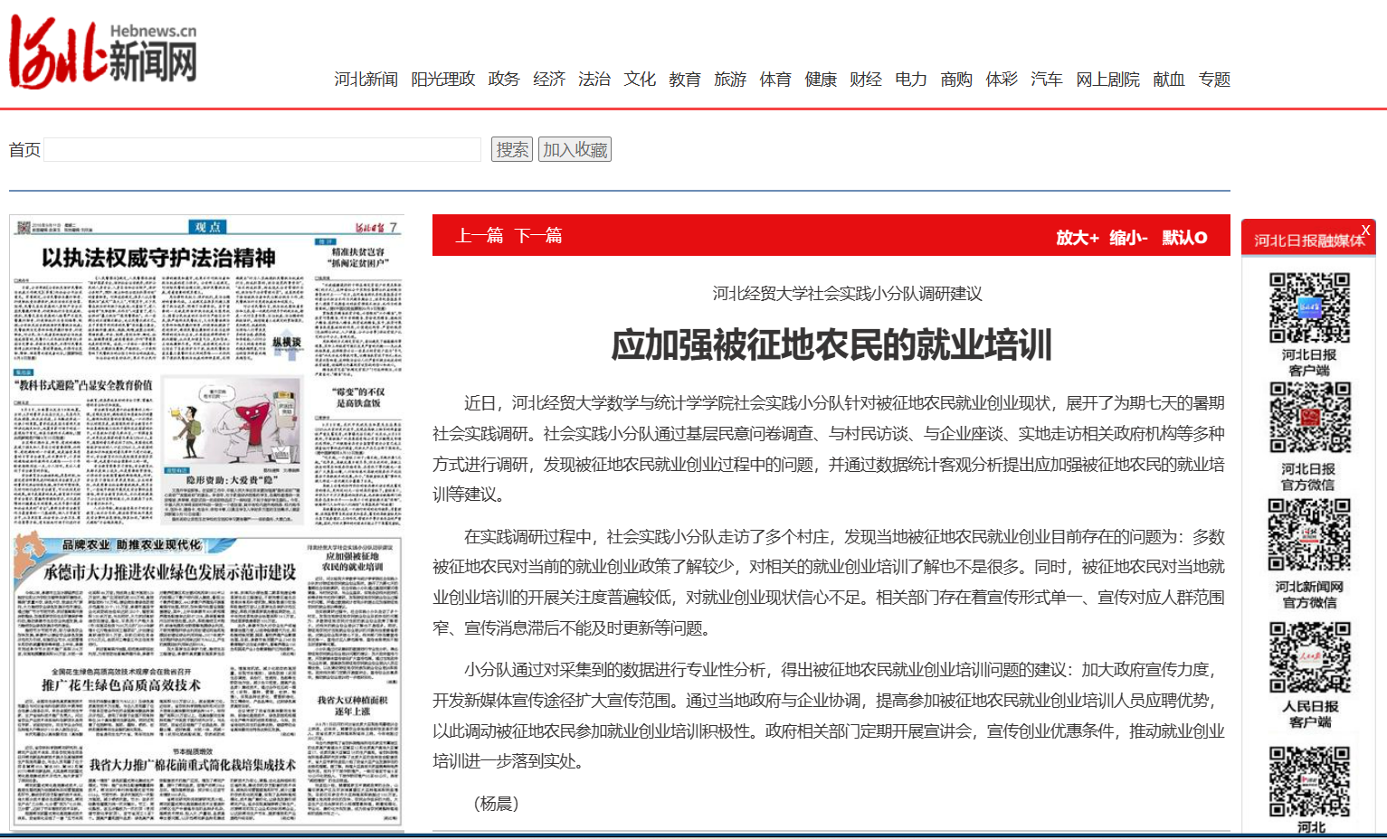 【河北日报】永利集团88304官网社会实践小分队调研建议:加强被征地农民的就业培训