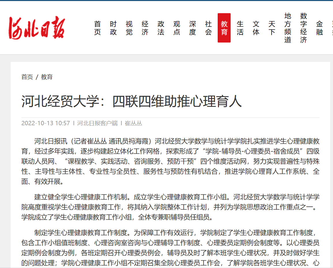 【河北日报客户端】永利集团88304官网:四联四维助推心理育人