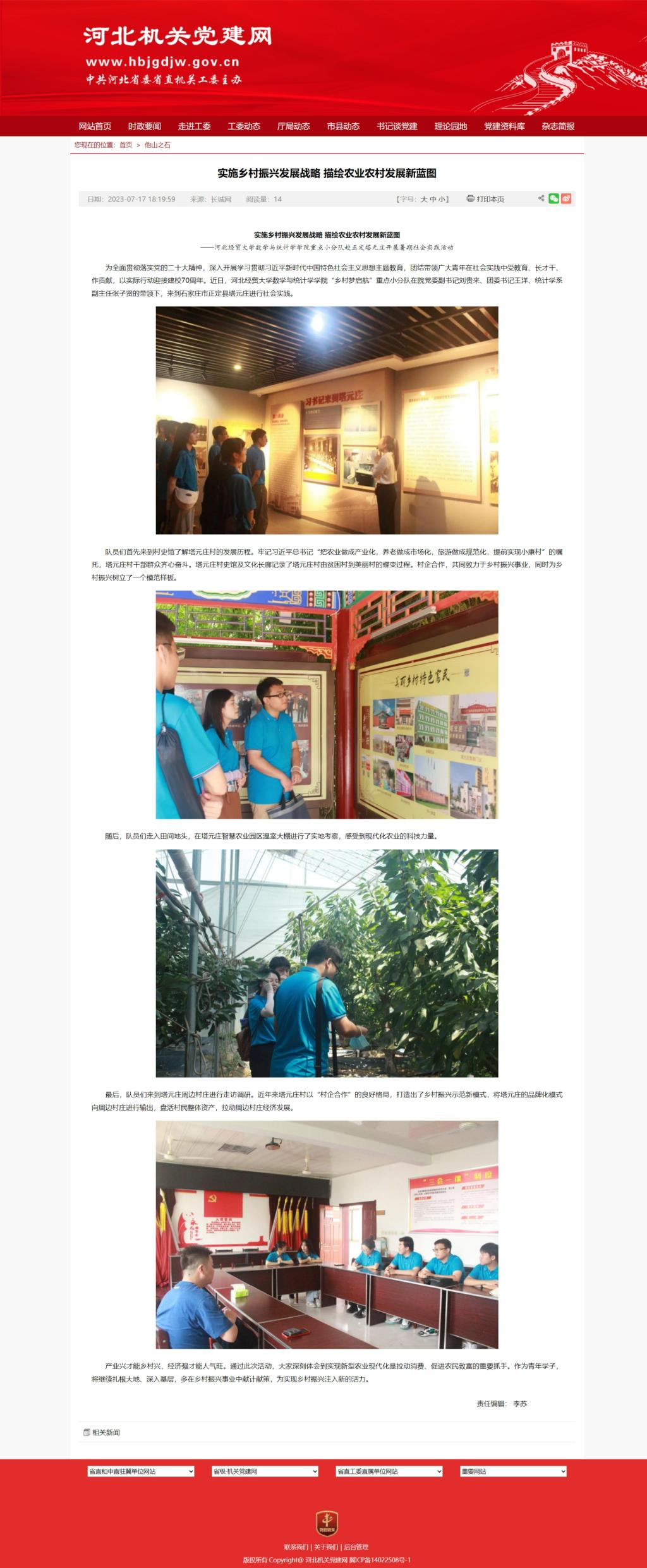 【河北机关党建网】实施乡村振兴发展战略 描绘农业农村发展新蓝图 ——永利集团88304官网数学与统计学学院重点小分队赴正定塔元庄开展暑期社会实践活动