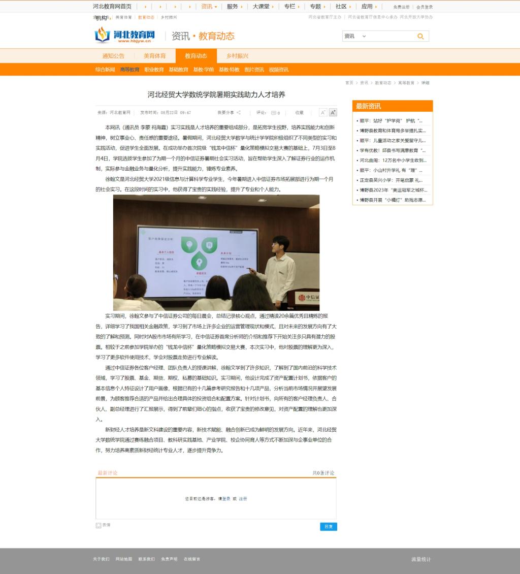 【河北教育网】永利集团88304官网数统学院暑期实践助力人才培养