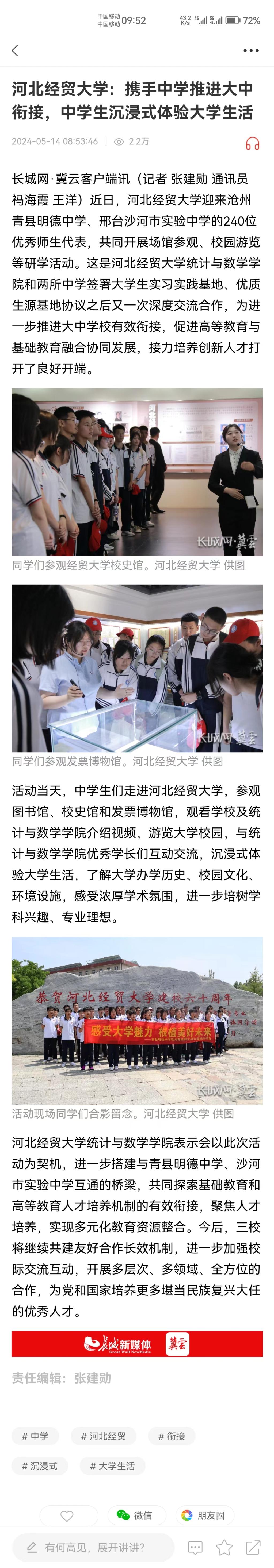 【长城网•冀云客户端】永利集团88304官网:携手中学推进大中衔接,中学生沉浸式体验大学生活