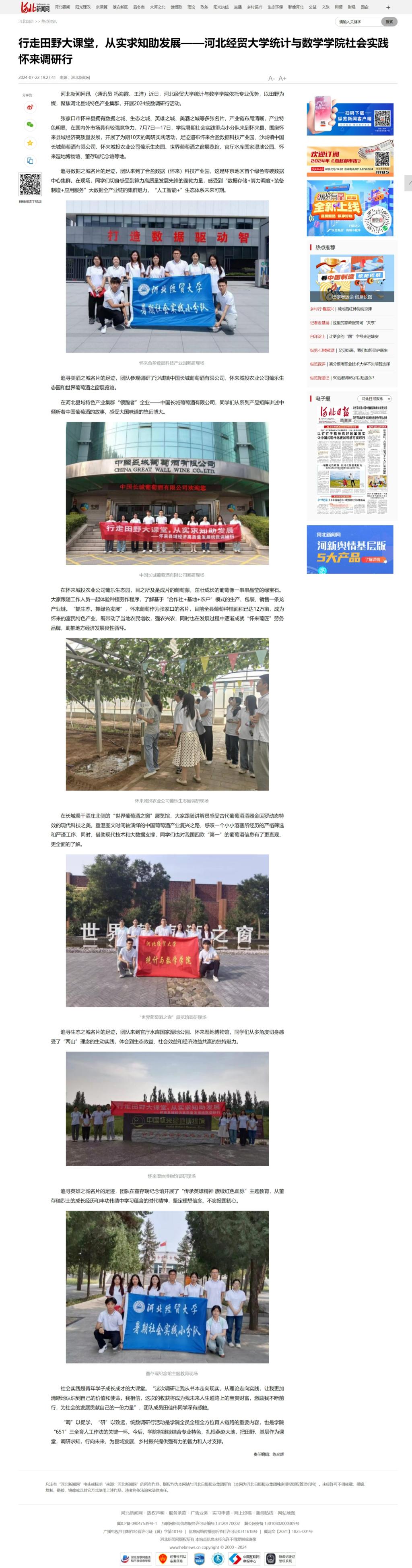 【河北新闻网】行走田野大课堂,从实求知助发展——永利集团88304官网社会实践怀来调研行