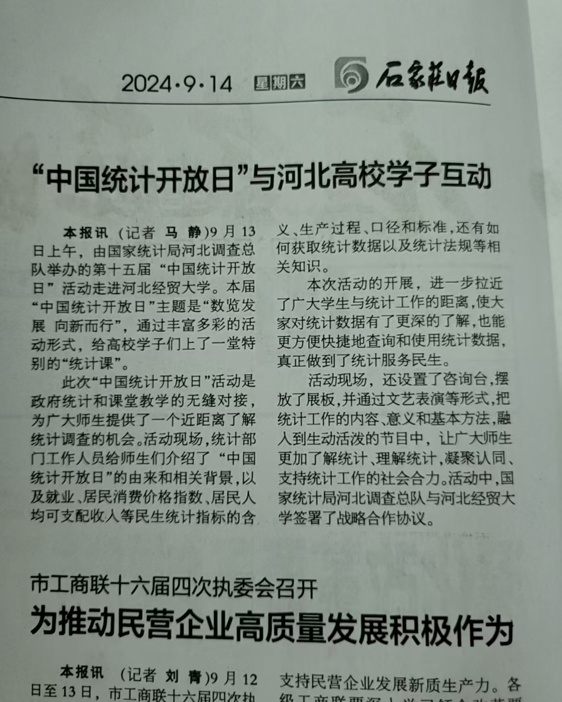 【石家庄日报】“中国统计开放日”与河北高校学子互动