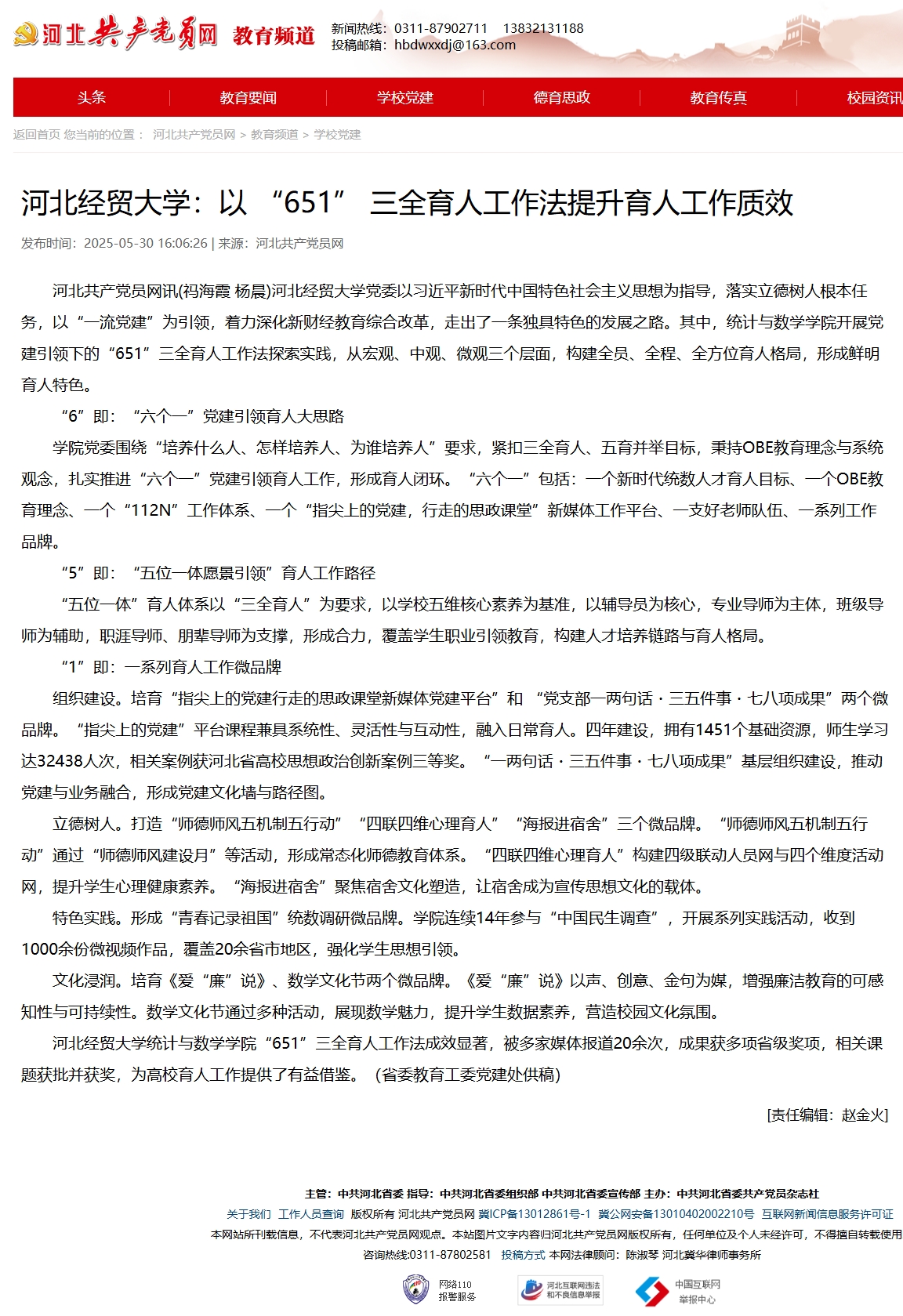 【河北共产党员网】永利集团88304官网:以 “651” 三全育人工作法提升育人工作质效